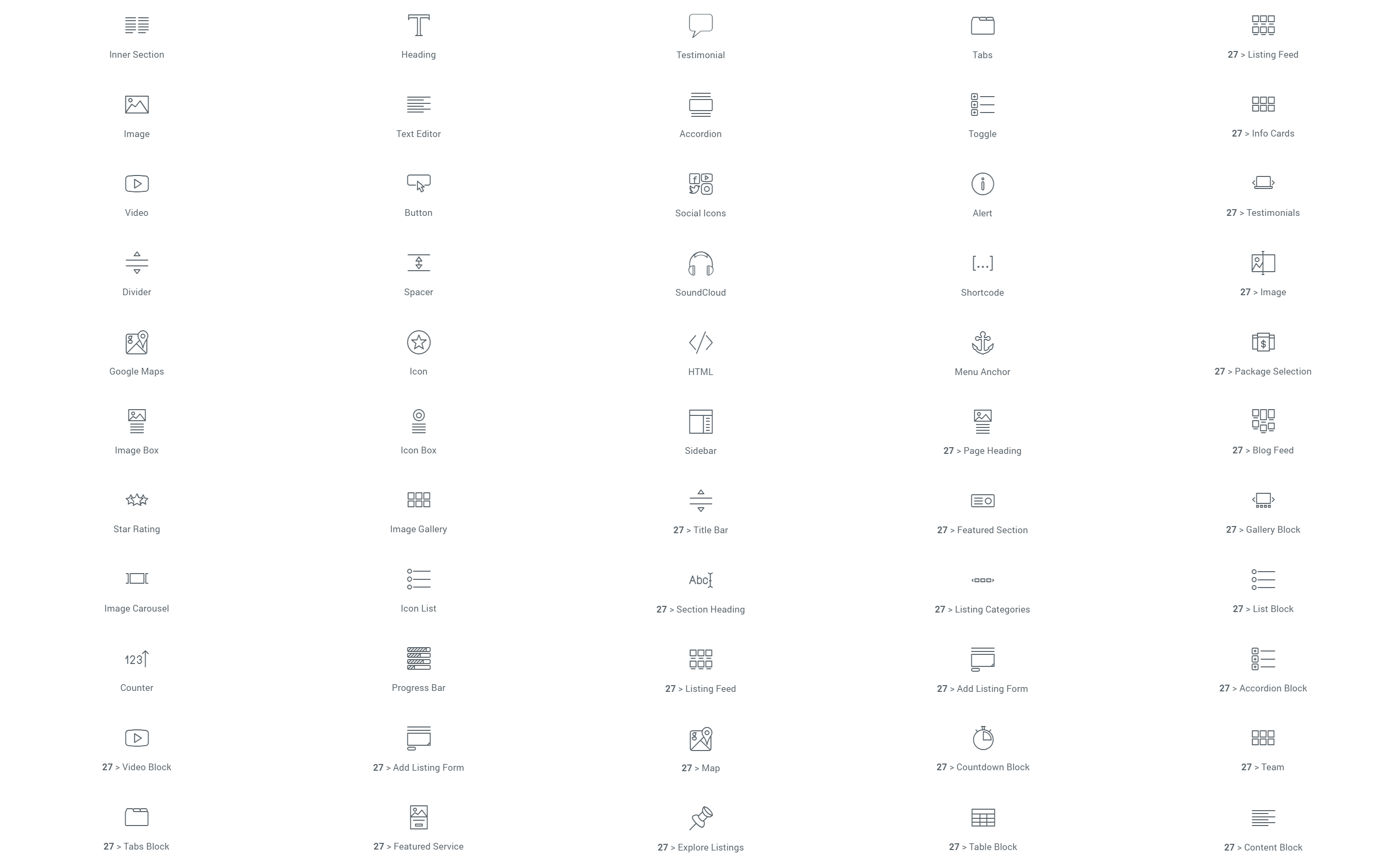 50+ Elements available to design pages out of the box. Add more using elementor plugins and addons
